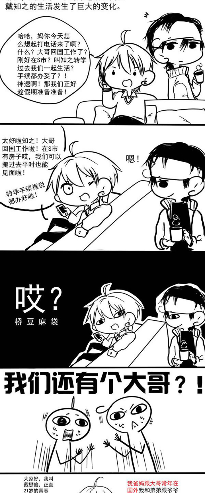 朴星的父母老来得子,让他多了个弟弟,但是朴星却对此感到十分丢脸。原本想在学校里隐瞒这件事,却没想到同学们早就提前得到了消息。而就在朴星对此感到心累的时候,一个帅气的男人出现在了他的面前...(《不枉此生》独立续作续作哦~)
