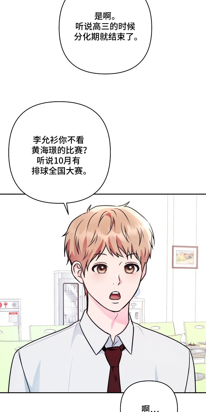 在ABO性别分化的世界里,欧米伽学生李允衫与儿时玩伴黄海璟重逢,却发现对方已分化成阿尔法,并成为赛明高中排球部的耀眼王牌。两人在爱宝乐园意外相遇后,开始透过网络悄悄联系。然而阿尔法与欧米伽接触仍被视为禁忌。他们一边隐藏悸动,一边在信息素与校规的束缚间挣扎,展开一段充满拉扯、克制,却又忍不住靠近的青春恋曲...