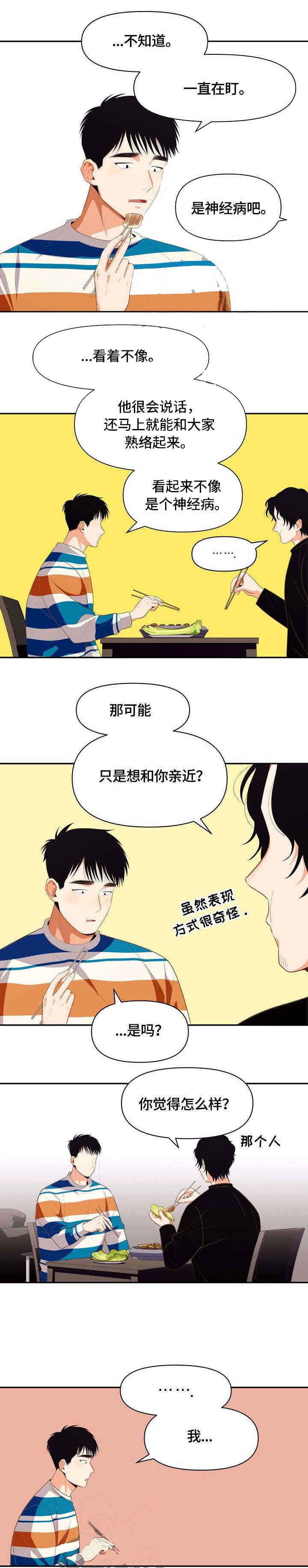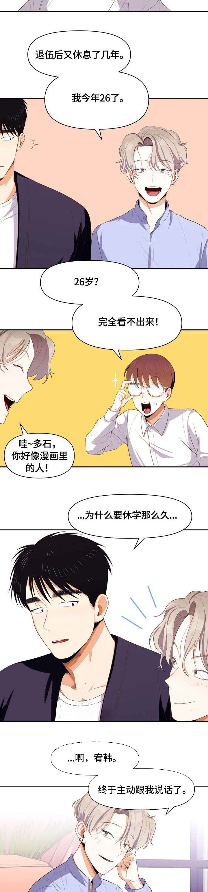 复学后的朴世真在上通识课程时,与郑宇贤组成了二人小组。面对这个十分热情且毫无边界感的组员,朴世真内心升起了一股无可奈何的感觉...