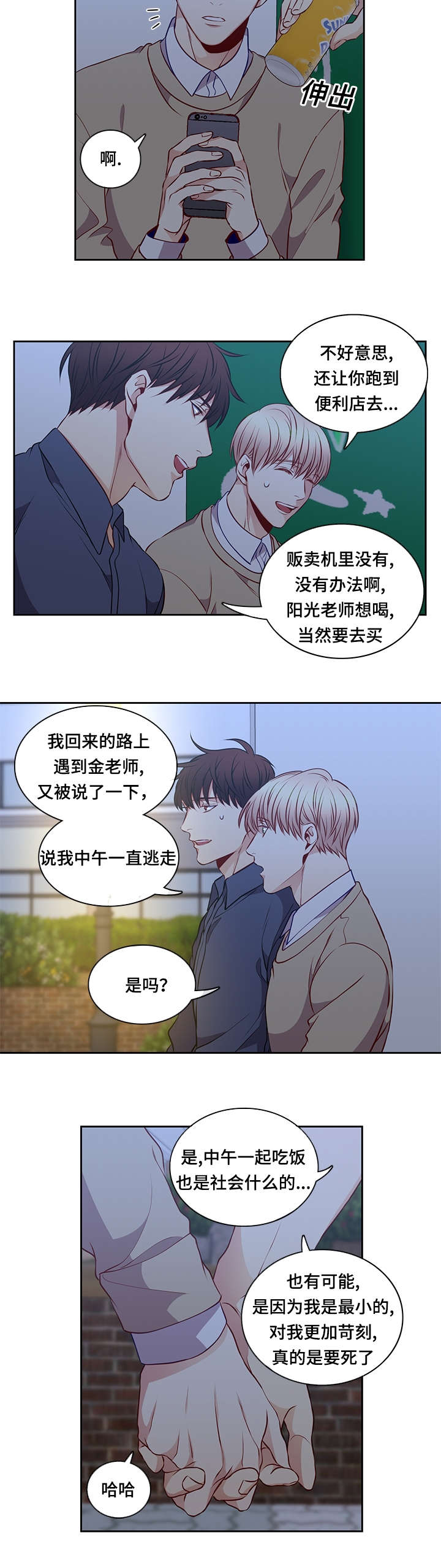 复学后的朴世真在上通识课程时,与郑宇贤组成了二人小组。面对这个十分热情且毫无边界感的组员,朴世真内心升起了一股无可奈何的感觉...