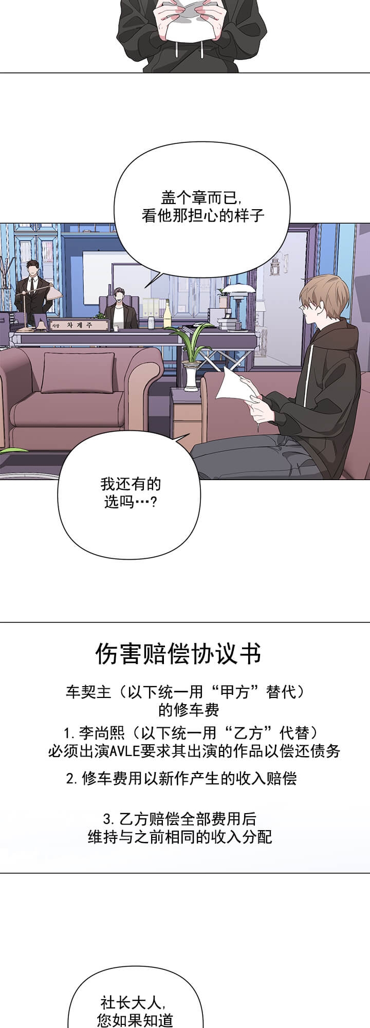 在铉浩经历了双重打击的这天,他遇见了某个公司的理事。理事喂他吃了个甜甜的蛋挞,铉浩不自觉地把沾在理事手上的奶油也给舔干净了。理事希望铉浩能用他的舌头为他做点其他事,但不知为何,铉浩似乎激怒了这位黑帮(?)理事?