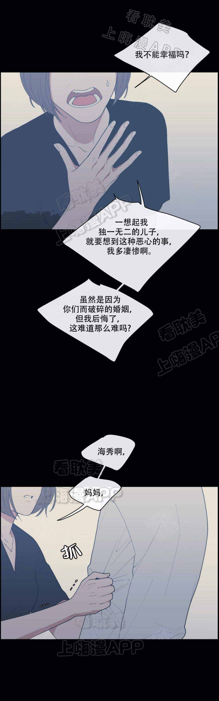 今年大一的俊宇因故寄宿在学校附近的朋友家中,某天深夜偶然看见朋友妈妈在房裡…「…是我眼花看错了吧?」