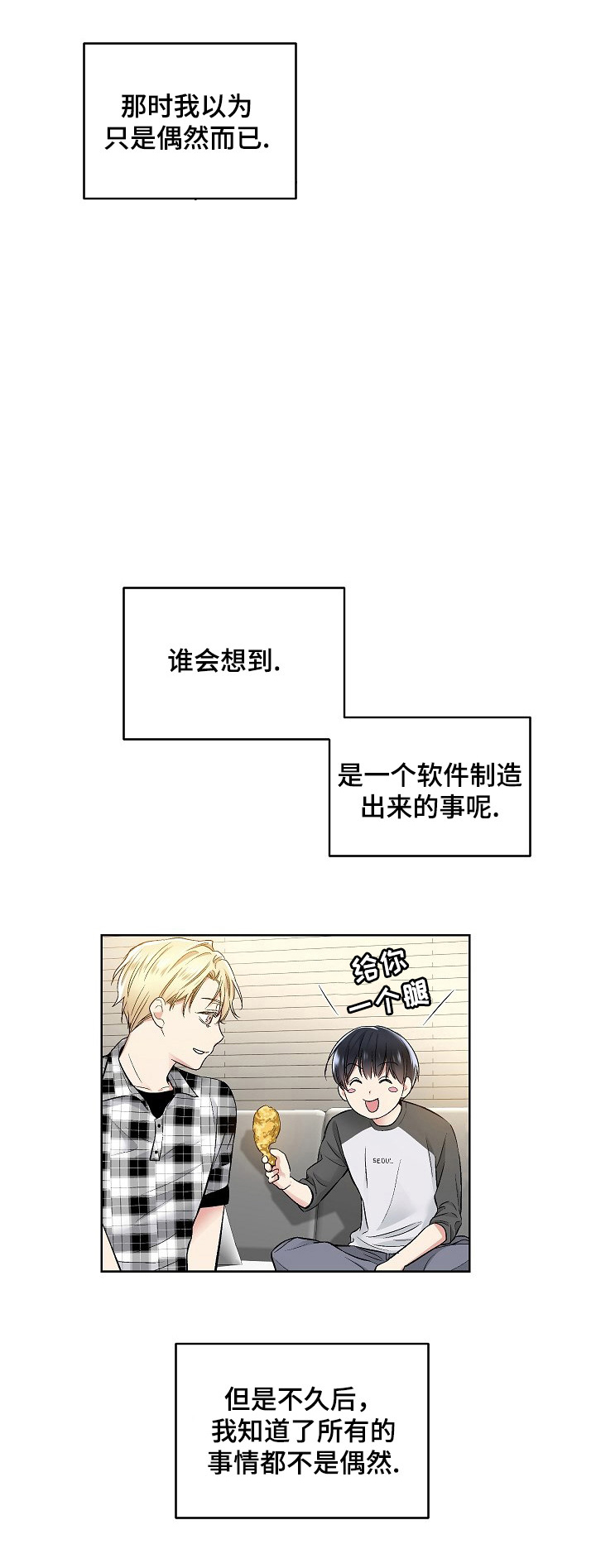 长得好看、性格完美的姜之汉在某次社团聚餐之后,意外地被同系的死宅男-文西硕给发现了自己同志的身份,甚至还阴差阳错地和对方接了吻。而文西硕在随后的日子里开始阴魂不散地跟着姜之汉,给姜之汉原本平静的日常带来了巨大的变化...(《无独有偶》同作者哦,高产似母猪??)