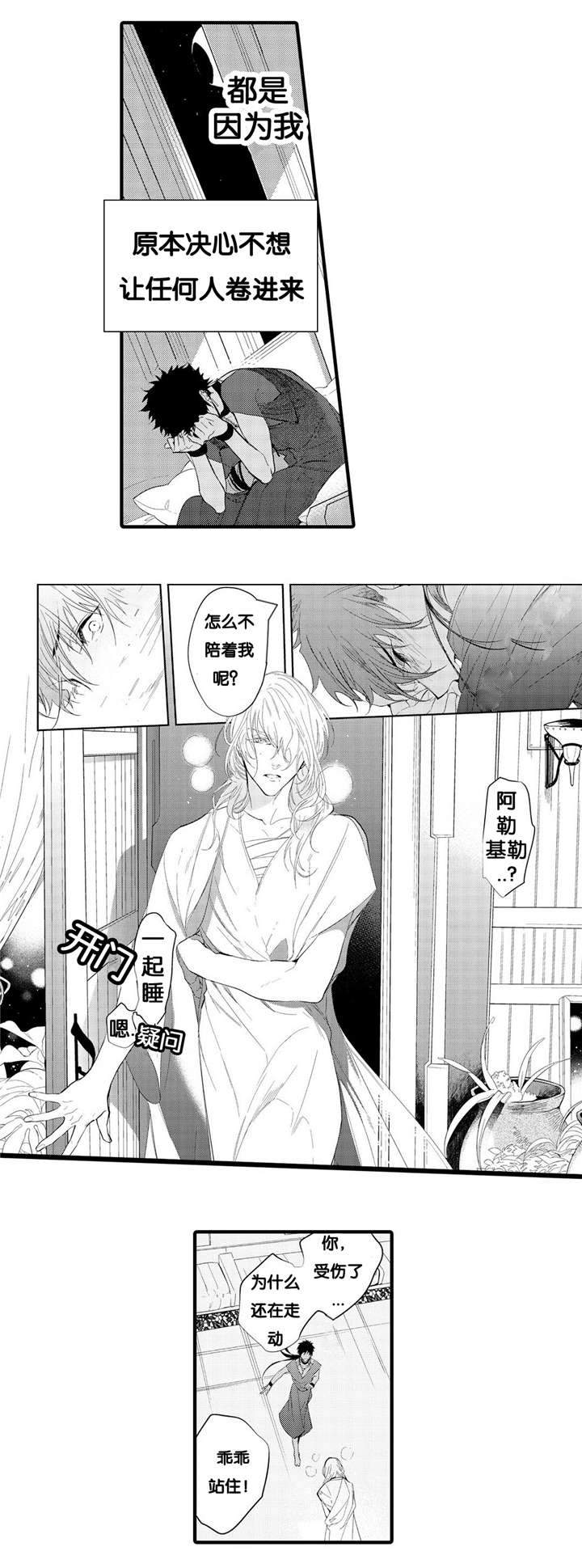 冷酷厌世的村庄守护者「潭」捡回失忆的白发美人「喜马」,一个憎恨特别市,一个疑似来自敌营。在怪物横行的森林里,两人从互相嫌恶到生死相依,禁忌情感与血腥真相交织,逐渐揭开千年前的悲愿与双生羁绊…