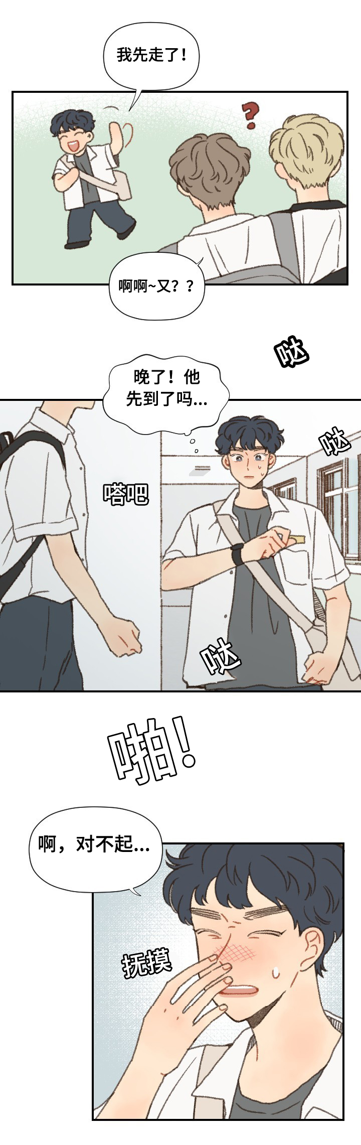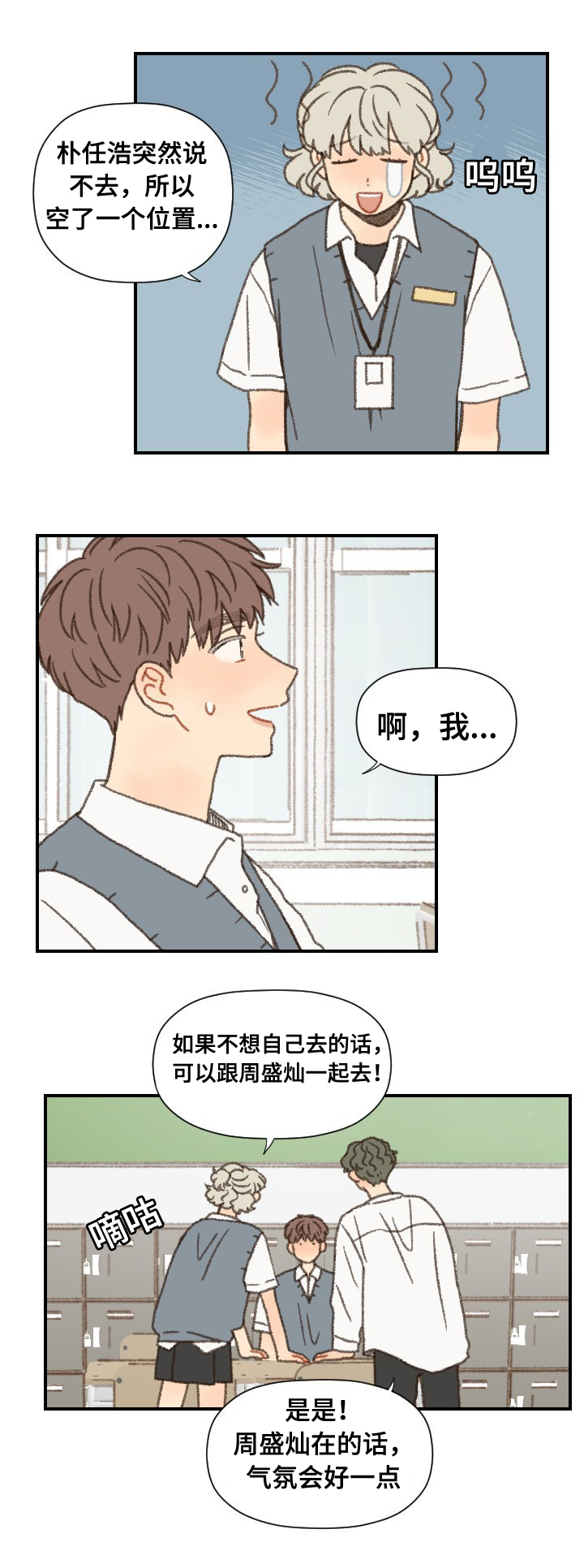 海嘉俊在修学旅途大巴停留在服务区的时候,下定决心买了一份炸土豆没想到回头一看大巴已经不见了,本想联络老师但因为手机在大巴上没带出来无法联络,就在这时裴善宇突然从旁边走出来...组成了二人掉队小组,好在成功借到了电话....但是糟糕的事情发生了,无法联系到老师。