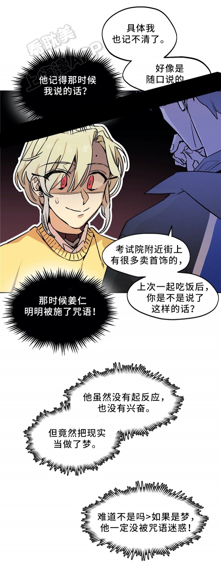 以贤在送外卖的时候被男人扑倒并且强吻。并且以贤想离开的时候还被另一个人以弄脏衣服为理由强行留下了他的外套。过了几天他去拿外套的时候男人提出了要与他契约,他才知道那个男人的真实身份是梦魇……