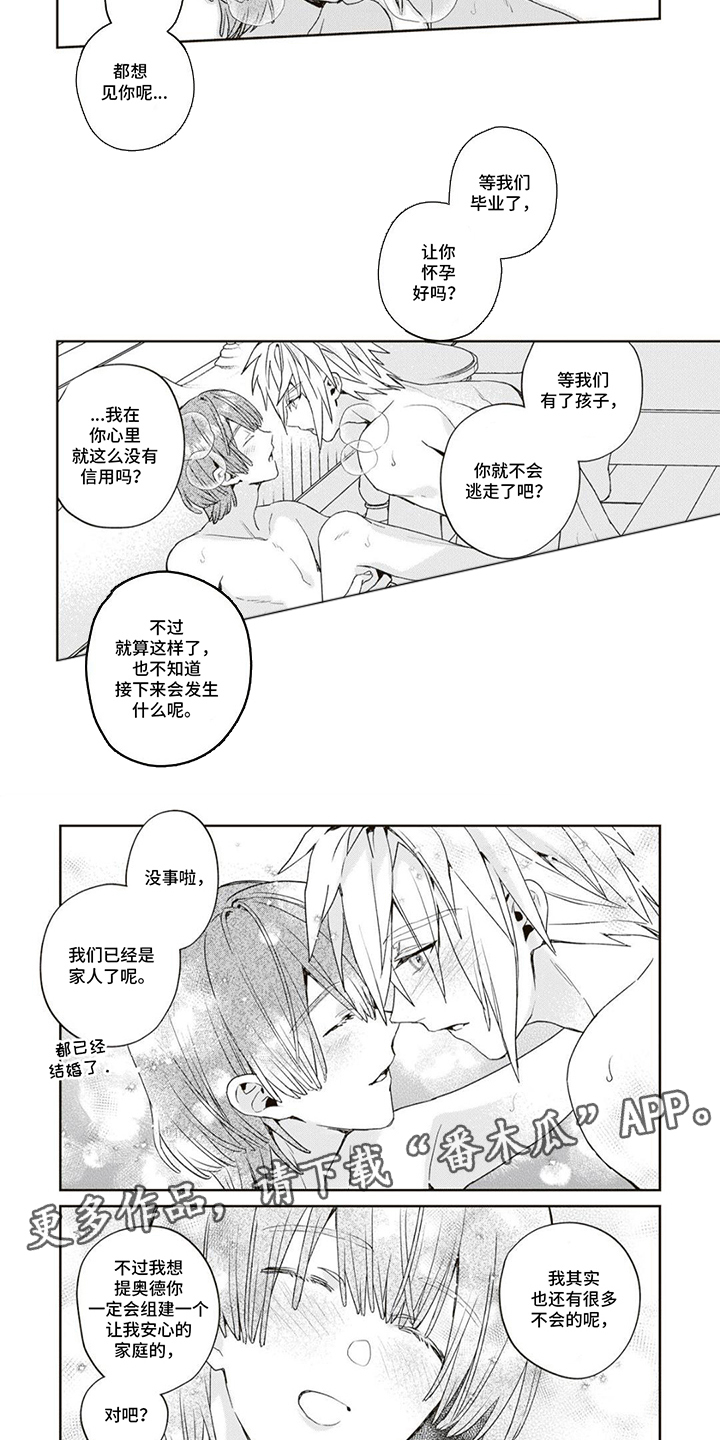 15岁的阿尔法少年杰伊德与贝塔少年伍杰宇相约未来跨海旅居。成年后,杰伊德努力攒钱筹备旅行。然而盛夏暴雨夜,伍杰唯一的亲人爷爷去世,令他陷入巨大悲痛。杰伊德强忍悲伤,全力守护伍杰(视其为救赎与挚爱)。生活逐渐恢复,伍杰重现笑容,但杰伊德初现的易感期征兆打破了这份平静。